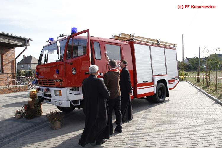 VOITSBERG, am 04.10.2015 Das im Juli 2015 an die polnische Feuerwehr Kosorowice verkaufte RLFA-Tunnel wurde am 4. Oktober 2015 in einer würdevollen Feier offiziell in den Dienst gestellt. Nach Ansprachen segnete der aus Kosorowice stammende Feuerwehrkurat und Pfarrer von Maria Lankowitz Josua Gonsior als Gastpfarrer das Fahrzeug. Es wurde uns übermittelt, dass die Kameraden mit diesem Fahrzeug sehr viel Freude haben und stolz sind, dieses zu besitzen. Wir, die FF Voitsberg, wünschen der FF Kosorowice mit dem Steyr viele Übungen und wenig Einsätze.