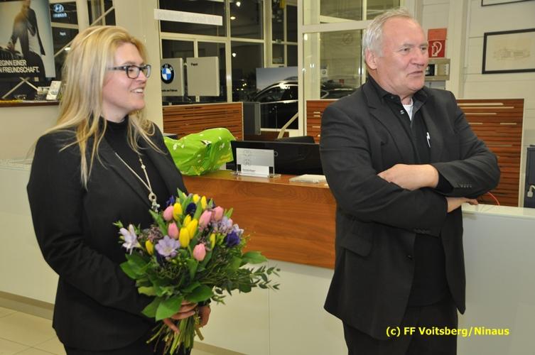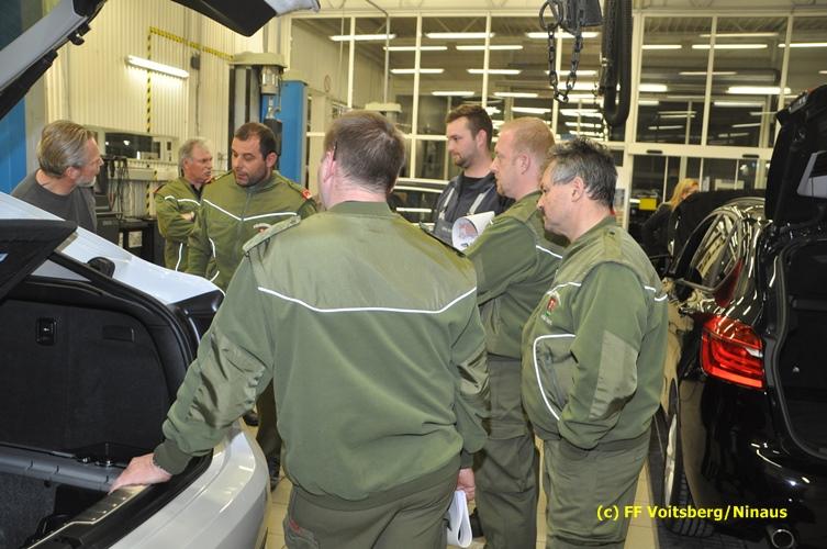 VOITSBERG, am 22.02.2016 Kameraden der FF Voitsberg folgten einer Einladung der Geschäftsführung des Autohauses BMW Papst in der Grazer Vorstadt in Voitsberg, um über die Handhabung bei Einsätzen mit Elektrofahrzeugen mehr Kenntnisse zu erlangen. Nach der Begrüßung durch die Geschäftsführer Romana und Othmar Papst folgte eine sehr interessante Schulung. Die Herren Gerhard Linhart und Patrick Eder zeigten und erklärten bei verschiedenen Fahrzeugmodellen die Einsatzmöglichkeiten bei verunfallten Fahrzeugen. Sehr interessiert wurden von den Kameraden Fragen an die Spezialisten gestellt, welche auch bestens beantwortet werden konnten. Diese Schulung zeigte auf, welche komplexen Einsatztaktiken anzuwenden sind und es wurden auch kleinere Mängel der Autohersteller erläutert. Wehrkommandant HBI Ing. Klaus Gehr dankte namens der FF Voitsberg für die aufschlussreichen Vorführungen und Erklärungen und überreichte Frau Romana Papst einen Blumenstrauß. Die Geschäftsführung lud abschließend alle Teilnehmer zu einem Imbiss ein, wofür sich die Kameraden bedanken möchten.