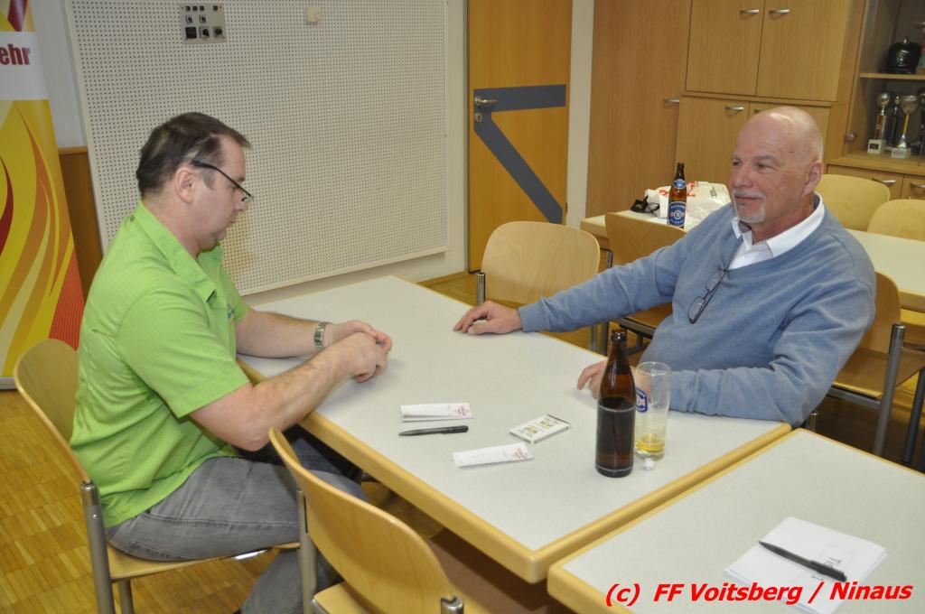 VOITSBERG, am 19.03.2016 Das bereits zur Tradition gewordene Osterschinkenschnapsen für die KameradInnen der Stadtfeuerwehr Voitsberg fand im Schulungsraum des Rüsthauses Voitsberg am 19.3.2016 statt. Die Begrüßung und Eröffnung wurde vom Verantwortlichen für die Kameradschaftspflege BI Karlheinz Buchegger vorgenommen. 13 Kameraden und 2 Kameradinnen stellten bei diesem kameradschaftlichen Wettspiel ihr Können unter Beweis. Für den einen lief es besser, für den anderen wieder nicht so gut, aber eines war wichtig, Kameradschaft und Spaß müssen an erster Stelle stehen. So war es auch, aber die Kameraden staunten nicht schlecht, als am Schluss eine Kameradin ganz oben stand. Waltraud Veigl, Mitorganisatorin und "Mädchen für alles" trotzte den Männern und ging als überraschende Siegerin hervor. Im Finale bezwang sie den Zweitplatzierten Rudolf Deutschmann und den Drittplatzierten Reinhard Graller am Siegertisch. Die weiteren Platzierungen: 4. Günter Höller 5. Rudolf Gargitter 6. Josef Reinisch 7. Gerhard Veigl 8. Alfons Tappauf 9. Klaus Gehr 10. Rene Sorger 11. Stefan Veigl 12. Karlheinz Buchegger 13. Walter Ninaus 14. Eva-Maria Flanschger 15. Richard Waidacher. Die Siegerehrung wurde von Bereichsfeuerwehrkommandanten LFR Engelbert Huber und dem Wehrkommandanten HBI Ing. Klaus Gehr vorgenommen. Dank für die Vorbereitung und Durchführung gilt neben der bereits erwähnten Waltraud Veigl dem Spielleiter Rudolf Gargitter auszusprechen. Besonderer Dank auch dem Fleischwarenfachgeschäft Reiner am Voitsberger Hauptplatz für die Warenspende. Abschließend wurden alle zu einer kleine Jause seitens der FF Voitsberg eingeladen.