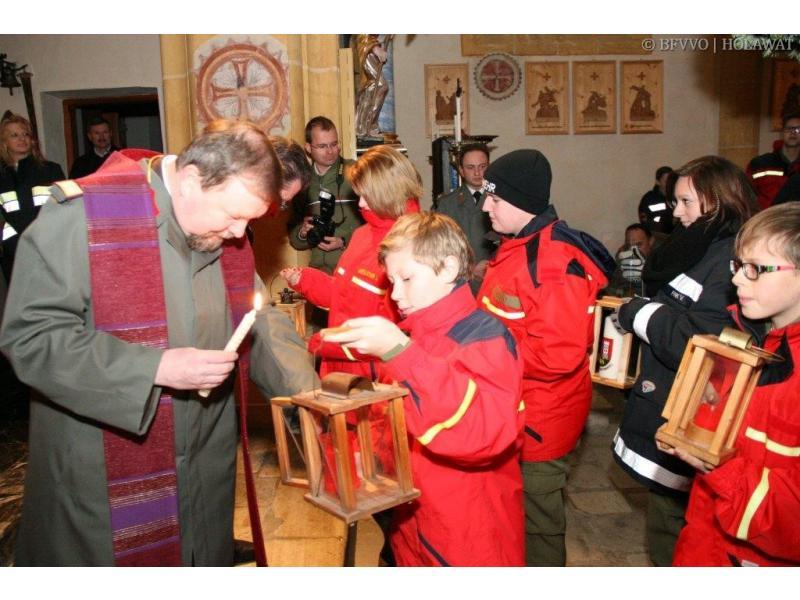 VOITSBERG, am 22.12.2013 Eine Abordnung Jugendlicher mit ihren Betreuern übernahm in einem feierlichen Rahmen in der Pfarrkirche Hirschegg das Friedenslicht aus Bethlehem