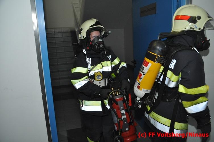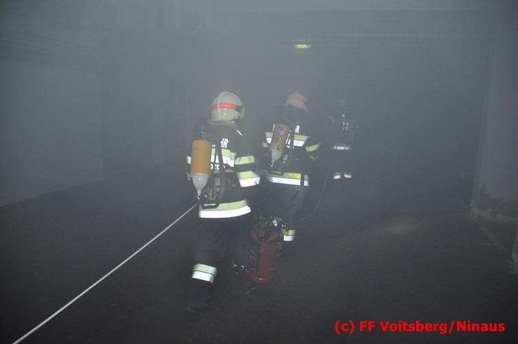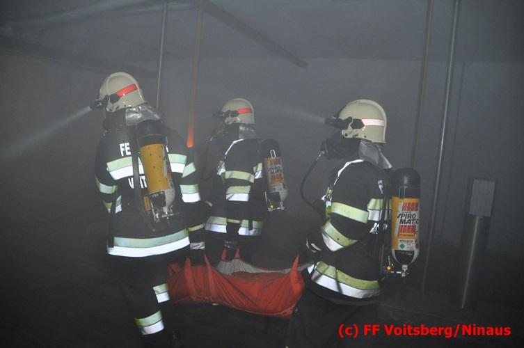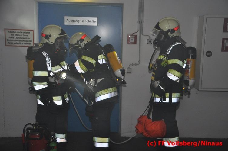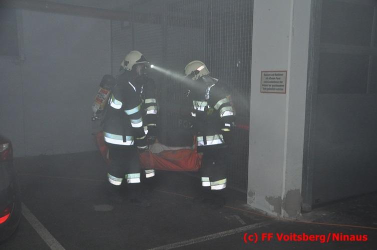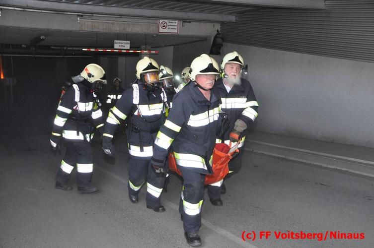 VOITSBERG, am 18.07.2016 Übungsannahme war ein Fahrzeugbrand in der Tiefgarage des EKZ Polizei, wobei eine Person als abgängig gemeldet wurde. Zwei Atemschutztrupps begaben sich in die stark verrauchte Tiefgarage, in der es auf Grund des Brandes keinen Strom, und somit auch kein Licht gab. Unter erschwerten Bedingungen begannen die Trupps mit der Personensuche, welche erfolgreich abgeschlossen werden konnte. Erstmals wurde bei dieser Übung der Funk in den Atemschutzmasken im "Einsatzfalle" erprobt, welcher sich sehr bewährt hat. Nach der Freimachen der verrauchten Garage mittels zwei Drucklüftern fand Vorort eine Übungsnachbesprechung statt. Bei dieser wurden einige Mängel seitens der brandschutztechnischen Ausstattung der Tiefgarage besprochen. Nach Möglichkeit soll nochmals eine solche Übung mit mehr Feuerwehren im heurigen Jahr abgehalten werden. Die Übungsleiter BI d. F. Ing. Bernd Unger und LM d. F. Harald Kremaucz bedankten sich bei der Mannschaft für deren Einsatz.