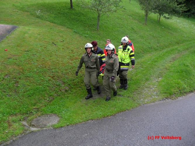 VOITSBERG, am 01.08.2016 Zwei Übungsszenarien wurden vorbereitet. Eine abgestürzte Person wurde mit MRAS-Technik aus einem Wald gerettet und in einem verrauchten Wirtschaftsgebäude gab es eine vermisste Person, welche unter Verwendung von schwerem Atemschutz ebenfalls gerettet wurde. Abschließend wurden alle von den Besitzern des Anwesens, der Familie Christof, zu einer Jause eingeladen, wofür als kleines Dankeschön ein Blumenstrauß überreicht wurde.