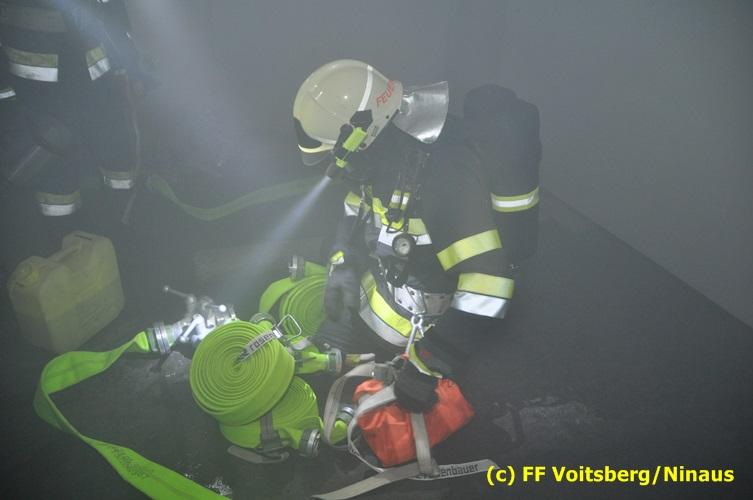 VOITSBERG, am 24.10.2016 Ein PKW-Brand in der Tiefgarage des EKZ-Polizei am Dr. Hubert-Kravcar-Platz war die Übungsannahme an dieser Einsatzübung mit den Feuerwehren Voitsberg, Krems, Bärnbach und Rosental. Nachdem die Brandmeldeanlage den Brand an die Bezirksleitzentrale Florian Voitsberg meldete, wurde die FF Voitsberg zum Brandobjekt beordert. Nach Erkundung durch den Einsatzleiter stellte dieser Fest, dass in der Tiefgarage ein Fahrzeug in Brand steht und schickte zwei Trupps zum Brandobjekt vor. Als Unterstützung wurden die Nachbarwehren nachalarmiert, welche die Trupps der FF Voitsberg ablösten und den Brand unter Verwendung von zwei Druckleitungen und der Zubringleitung von einem Hydranten zu den Tanklöschfahrzeugen löschen konnten. Mit vier Drucklüftern wurden die Tiefgarage rauchfrei gemacht. Nach Kontrolle des Objektes konnte "Brand aus" gegeben werden. Bei einer abschließenden Besprechung der Einsatzleiter mit den Gruppenkommandanten und Atemschutzgeräteträgern wurde über Mängel und Verbesserungen diskutiert, was auch der Sinn einer Übung ist.