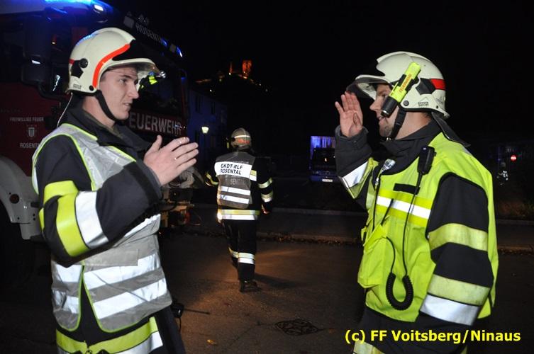 Nach der Versorgung der Gerätschaften bedankte sich der Wehrkommandant bei den Wehren für die Teilnahme und lud alle Übungsteilnehmer ins Rüsthaus Voitsberg zu einer Jause und einem Getränk ein.