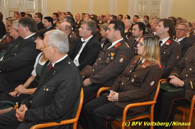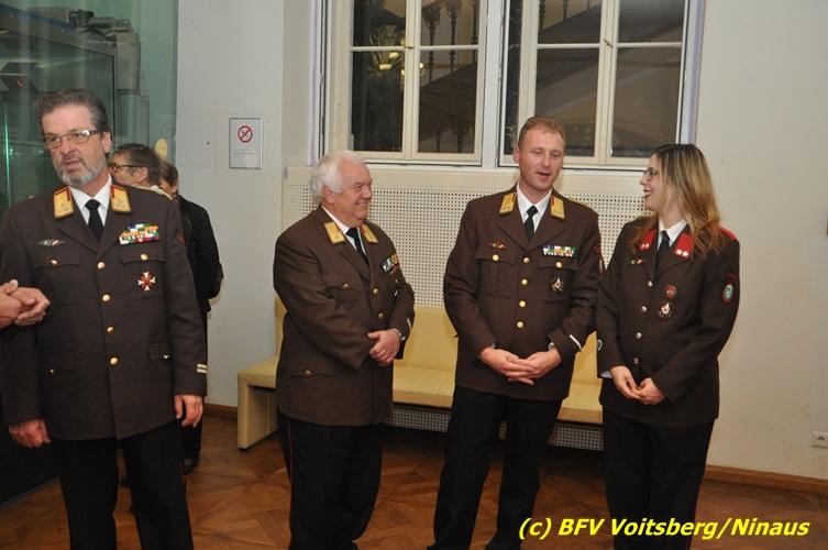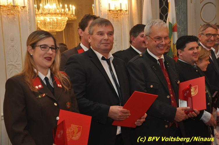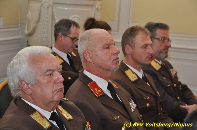 Der netten Feierstunde in der altehrwürdigen Grazer Burg wohnten HBI Ing. Klaus Gehr und HBM dV Walter Ninaus (für die FF Voitsberg), sowie BerFwKdt LFR Engelbert Huber, BR Christian Leitgeb und ABI Alfred Jauk bei.