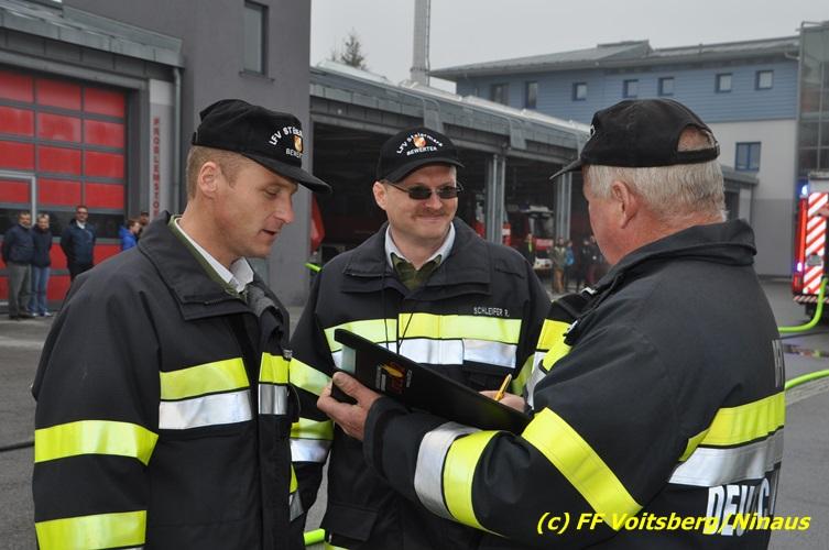 11 KameradInnen der Stadtfeuerwehr Voitsberg stellten sich in drei Durchgängen den Branddienstleistungsprüfungen in Gold, Silber und Bronze. Unter dem bewährten Bewerterteam um den Landesbewerbsleiter BR d. F. Johann Bretterklieber und den Bewertern BR Christian Leitgeb und OBI Robert Schleifer konnten alle drei Bewerbsdurchgänge in der erlaubten Zeit fehlerfrei abgeschlossen werden. Bewerbsleiter BR d. F. Johann Bretterklieber, Bürgermeister EHBI Ernst Meixner, Landesfeuerwehrrat Engelbert Huber und der Voitsberger Wehrkommandant HBI Ing. Klaus Gehr würdigten in ihren Grußadressen die Leistungen und gratulierten dazu.