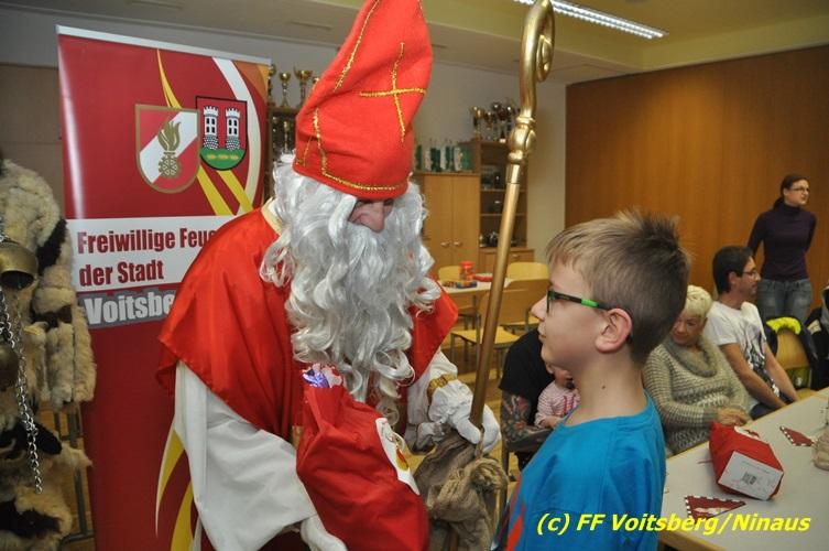 Auch heuer nahmen sich der Nikolaus und der Krampus Zeit, um bei den Jüngsten der Feuerwehrfamilie der FF Voitsberg im Rüsthaus vorbeizuschauen. Aufgrund der Tatsache, dass nur brave Kinder anwesend waren, brauchte der Krampus den Kindern keine Angst zu verbreiten. Gemeinsam mit dem Nikolaus wurden die Kinder bei funkelnden Augen mit einem Nikolaus-Sackerl beschenkt.