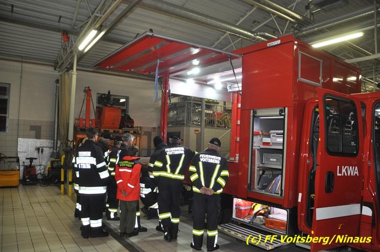 VOITSBERG, am 05.12.2016 Nach der Neuanschaffung eines LKWA für den in die Jahre gekommenen VF wurde der Mannschaft das neue Fahrzeug vorgestellt. OBI Michael Münzer und LM d. F. Harald Kremaucz zeigten den KameradInnen das neue Containersystem, mit welchem bei den einzelnen Einsätzen rasch und gezielt in Tätigkeit getreten werden kann. Weiter wurde Ausstattung und die technischen Einrichtigungen vorgeführt.