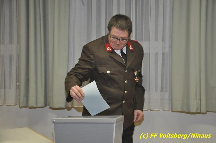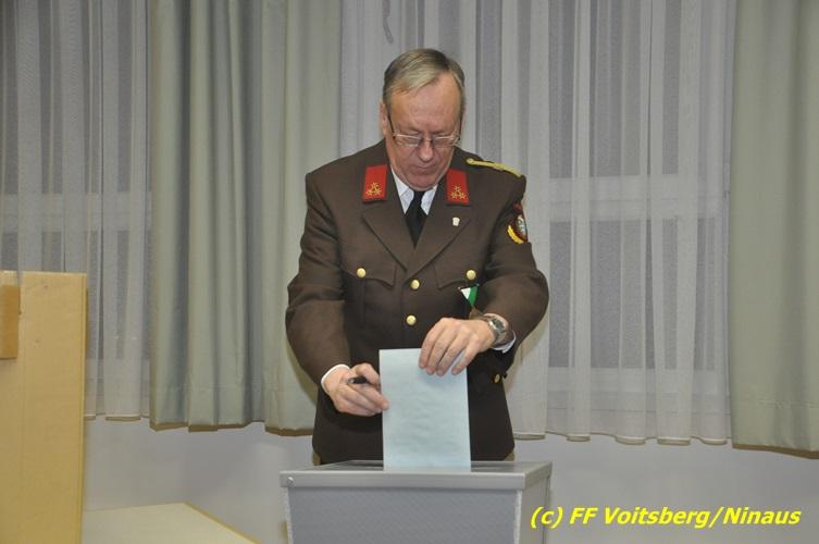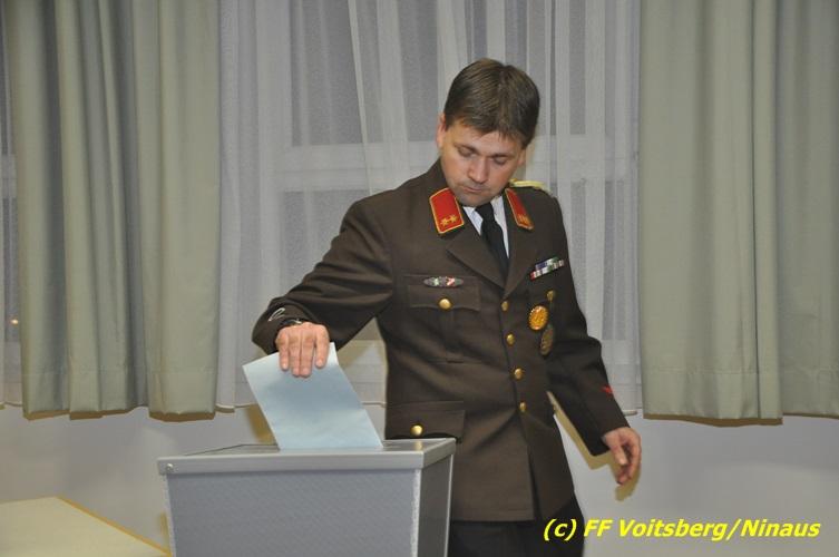 VOITSBERG, am 11.02.2017 Neuwahlen bei der FF Voitsberg - HBI Ing. Klaus Gehr und OBI Michael Münzer mit großer Mehrheit wiedergewählt Unter dem Vorsitz des Bereichsfeuerwehrkommandantern LFR Engelbert Huber standen die Neuwahlen des Kommandos der FF Voitsberg auf der Tagesordnung der Wahlversammlung. Zu Wahlhelfern wurden eingangs die Kameraden Alfred Jauk, Günter Höller und Hendrik Wolf ernannt. Zur Wahl zum Kommandanten wurde ein Wahlvorschlag, lautend auf Klaus Gehr, ordnungsgemäß eingebracht und geprüft. Nach geheimer Wahl wurde HBI Ing. Klaus Gehr fast einstimmig in seiner Funktion bestätigt. Zur Wahl des Kommandanten-Stellvertreters wurde auch ein Wahlvorschlag, lautend auf Michael Münzer, ebenfalls ordnungsgemäß eingebracht und geprüft. Auch hier wurde OBI Michael Münzer mit großer Mehrheit in seiner Funktion bestätigt. Beide nahmen die Wahl an. LFR Huber gratulierte beiden zum eindeutigen Wahlergebnis und lobte in seinen Grußworten die Leistungen der FF Voitsberg für des BFV Voitsberg. Auch die gute Zusammenarbeit mit der Stadtgemeinde Voitsberg unter Bürgermeister Ernst Meixner wurde gewürdigt. Die wiedergewählten Kommandanten dankten in ihren Ausführungen für das entgegengebrachte Vertrauen und versprachen dieses auch zum Wohle der FF Voitsberg einzubringen. Bürgermeister EHBI Ernst Meixner gratulierte ebenfalls dem neuen, alten Kommando und bot auch weiter die Zusammenarbeit an. Die Stadtgemeinde Voitsberg werde für die Anliegen der Stadtfeuerwehr Voitsberg stets ein offenes Ohr haben und die Wünsche nach Möglichkeit erfüllen. Dank sprach er auch dem BFK unter LFR Engelbert Huber für die gute Zusammenarbeit aus.