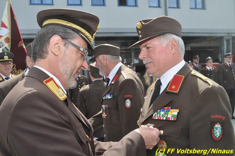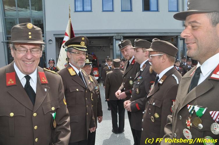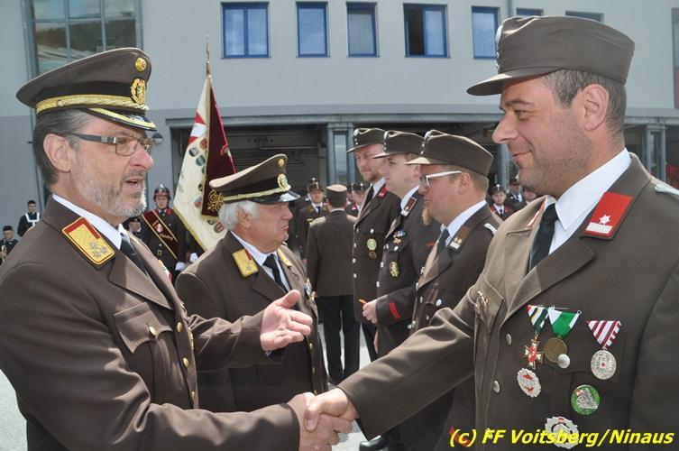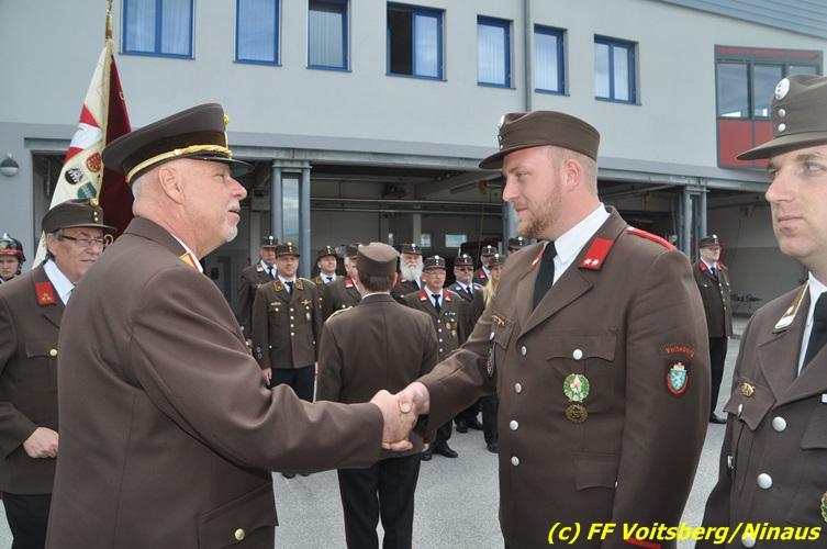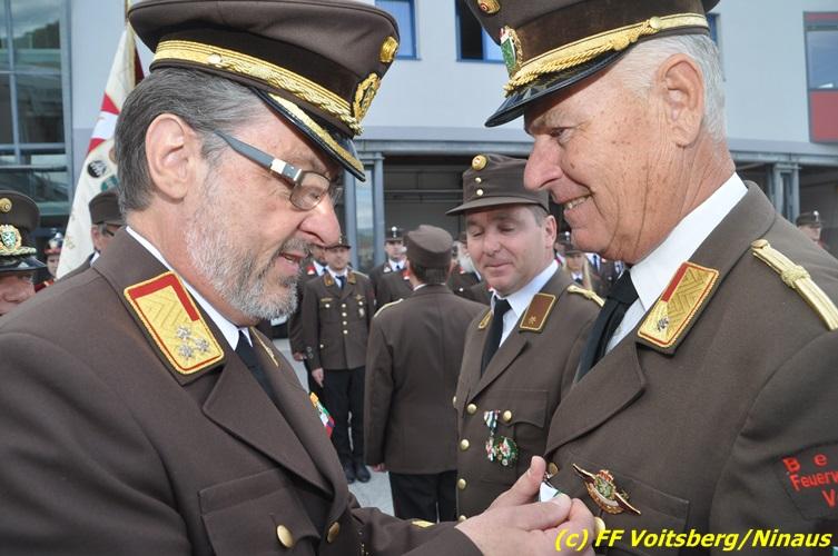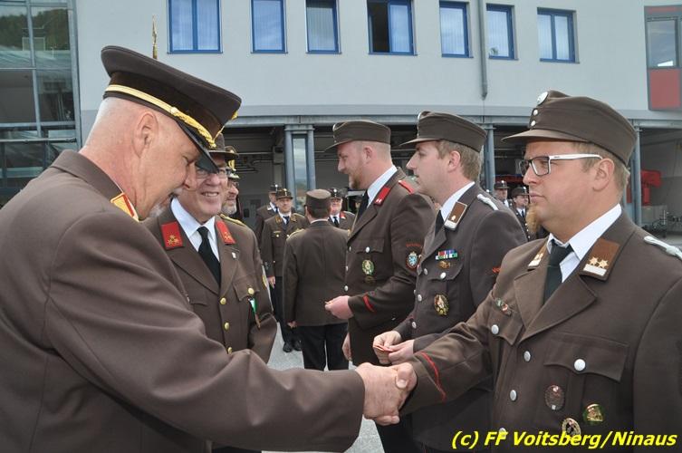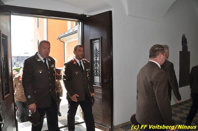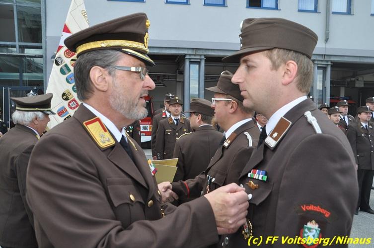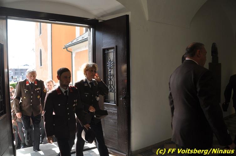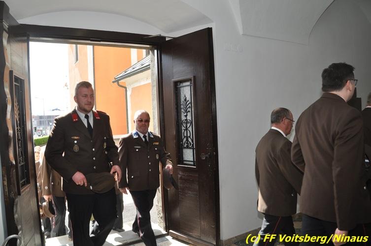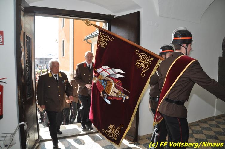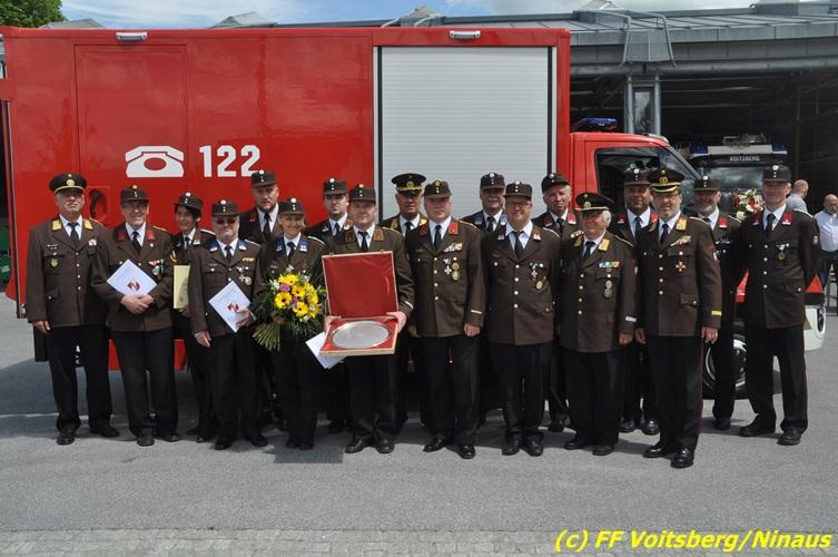 Traditionell begann der Festtag der Feuerwehren für die KameradInnen der Stadtfeuerwehr Voitsberg, dem Florianitag, mit einem Gottesdienst in der St. Josefskirche, zelebriert von Stadtpfarrer Dechant Mag. Gerald Krempl und musikalisch umrahmt von einem Bläserensemble der Bergkapelle Hödlgrube-Zangtal. Beim Rüsthaus erfolgte anschließend der auch schon traditionelle Frühjahrsrapport mit der Meldung an Bürgermeister Ernst Meixner. Wehrkommandant ABI Ing. Klaus Gehr konnte eingangs Stadtpfarrer Dechant Mag. Gerald Krempl, Bürgermeister EHBI Ernst Meixner, die Vizebürgermeister Kurt Christof und Walter Gaich, Stadtrat Markus Leinfellner, die Gemeinderäte Peter Hemmer, Manfred Prettenthaler und Alois Scherr, Chefinspektor Robert Zapfl von der PI Voitsberg, Bezirksstellenleiter des Zivilschutzverbandes Anton Schober, Franz Patz von den Amateurfunkern, Bereichsfeuerwehrkommandant Landesfeuerwehrrat Engelbert Huber, Abschnittsfeuerwehrkommandant ABI Alfred Jauk und die Ehrendienstgrade EABI Rudolf Gargitter und ELM Richard Waidacher begrüßen. In seinen Grußworten überbrachte Bürgermeister Ernst Meixner die Grüße des Gemeinderates und dankte den Mitgliedern der FF Voitsberg für ihren Einsatz zum Wohle der Voitsberger Bevölkerung und gratulierte zur perfekten Organisation des „Tages der Einsatzorganisationen“, welcher gestern beim Rüsthausgelände stattfand. Anschließend wurden der Probefeuerwehrmann David Acham und die Probefeuerwehrfrau Sarah Wintscher nach Verlesen der Gelobungsformel durch den Dechant per Handschlag mit dem Wehrkommandanten angelobt. Die Jungfeuerwehrmänner Jonathan Rapp, Marvin Wintscher, Diemo Acham und Philipp Schmelzer wurden mit Jugendstreifen befördert. David Acham, Sarah Wintscher und Katharina Gogg wurden zu Feuerwehrmänner/frauen befördert. Oberfeuerwehrmann Stefan Veigl wurde zum Hauptfeuerwehrmann, LM d. F. Christian Buchegger zum Löschmeister und Gruppenkommandanten, OLM d. F. Rene Sorger zum Oberlöschmeister und Gruppenkommandanten und Löschmeister Alexander Kröpfl zum Brandmeister und Zugskommandant befördert. Mit der Verdienstmedaille in Bronze für 10jährige Mitgliedschaft in der FF Voitsberg wurde Martin Rapp und der Verdienstmedaille in Silber für 20jährige Mitgliedschaft Ernst Meixner und Waltraud Veigl geehrt. Seitens des BFV Voitsberg wurden mit dem Verdienstkreuz in Bronze Günter Buchegger und mit dem Verdienstkreuz in Silber Karlheinz Buchegger, Ernst Meixner, Rudolf Deutschmann, Friedrich Raudner, Josef Reinisch, Alfons Tappauf und Richard Waidacher von LFR Engelbert Huber ausgezeichnet. Vom Land Steiermark wurde für 25jährige Mitgliedschaft Alfons Tappauf und für 50jährige Mitgliedschaft Rudolf Gargitter geehrt. Das Verdienstkreuz 3. Stufe des LFV Steiermark erhielten Christian Buchegger und Rene Sorger. Ein Höhepunkt dieses Florianitages war die Übergabe und Segnung des Ölschadensfahrzeuges, welches der FF Voitsberg als Bereichsstützpunkt seitens des LFV Steiermark durch LFR Engelbert Huber übergeben und von Dechant Mag. Krempl gesegnet wurde. LFR Huber betonte in seiner Ansprache die Wichtigkeit der FF Voitsberg für den Bereich Voitsberg als Zentrum der Aktivitäten und gratulierte zur gelungenen Abwicklung der gestrigen Großveranstaltung. Alice und Alfons Tappauf, welche fast 20 Jahre im Rüsthaus wohnten, haben außerhalb von Voitsberg ein neues Heim gekauft und werden der FF Voitsberg nicht mehr ihren Dienst anbieten können. Wehrkommandant ABI Gehr bedauerte dies und dankte beiden für ihre stete Einsatzbereitschaft, übergab ihnen ein Abschiedsgeschenk und wünschte ihnen namens aller Wehrmitglieder viel Glück und Gesundheit in der Zukunft. Moderiert in bewährter und gekonnter Weise wurde diese Veranstaltung von BI Karlheinz Buchegger. Mit dem Abspielen der Landeshymne durch eine Abordnung der Bergkapelle Hödlgrube-Zangtal wurde dieser würdevolle Florianitag beim Rüsthaus abgeschlossen. Ein gemeinsames Mittagessen beim Gasthaus Muralter rundete diesen für die Feuerwehren stolzen Feiertag ab.