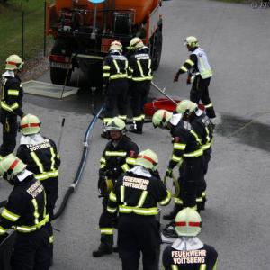 Erste Einsatzübung mit dem neuen Ölschadensfahrzeug. Übungsannahme war das Auslaufen einer Flüssigkeit aus einem Tankwagen. Hiebei wurde die technische Ausstattung der Beladung des neuen Einsatzfahrzeuges erstmals verwendet und beübt.