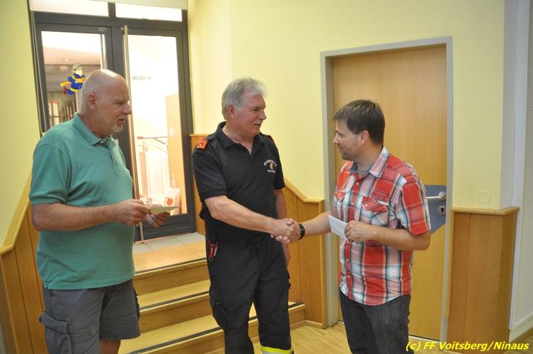 VOITSBERG, am 26.06.2017 Gratulation zur Vollendung des 60. Lebensjahres unseres Zugskommandanten BI Karlheinz Buchegger durch ABI Ing. Klaus Gehr und OBI Michael Münzer namens aller KameradInnen. Der Jubilar lud Alle zu einem Abendessen im Rüsthaus ein.