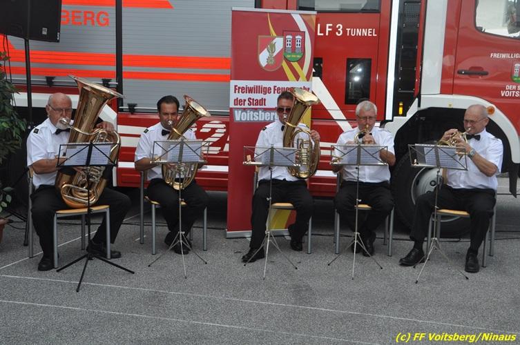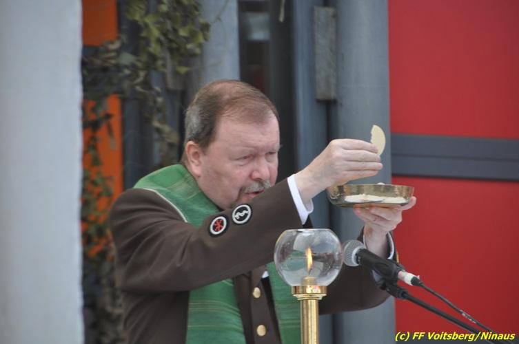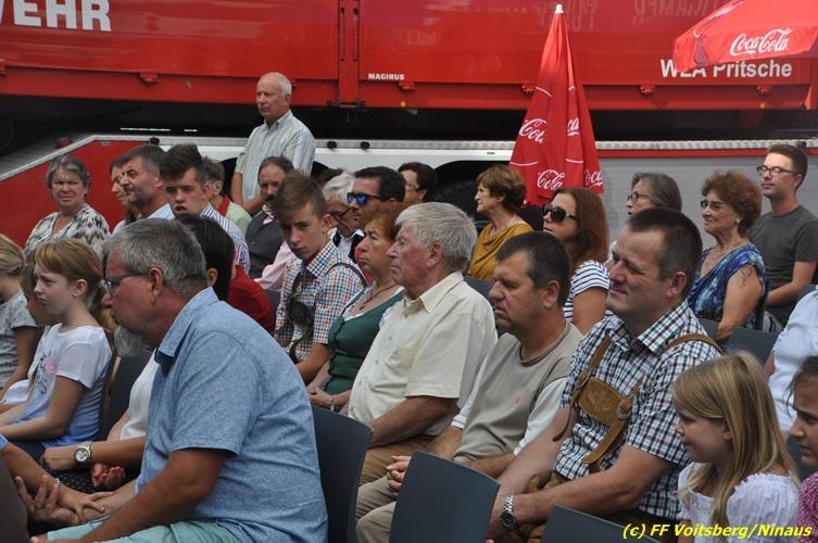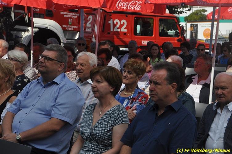 VOITSBERG, am 27.08.2017 Vor Beginn der Feldmesse im Rahmen des Zweitagefestes der FF Voitsberg wurde dem Mitglied der Stadtfeuerwehr Voitsberg, Generalvikar Dr. Erich Linhardt auf Grund seiner 20jährigen Mitgliedschaft die Verdienstmedaille in Silber der FF Voitsberg von Bürgermeister Ernst Meixner verliehen. Erste Gratulanten waren BerFwKdt LFR Engelbert Huber, Wehrkommandant ABI Ing. Klaus Gehr und ABI Alfred Jauk. Anschließend zelebrierte Dr. Erich Linhardt, wie alle Jahre zuvor, die bereits zur Tradition gewordene Feldmesse vor einer großen Schar an Bewohnern von Voitsberg und Umgebung.
