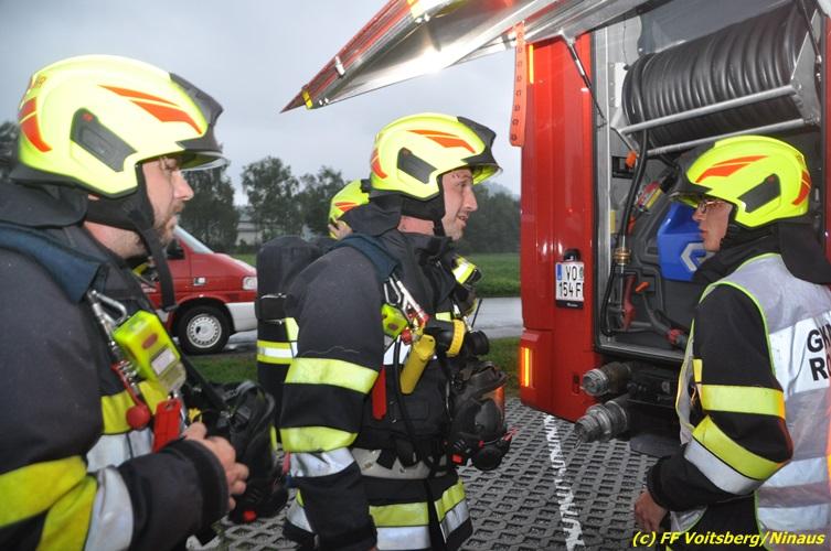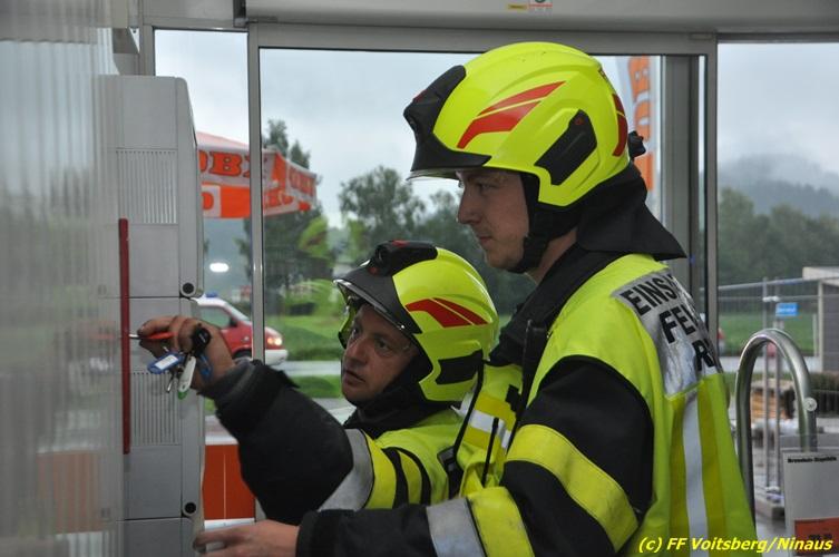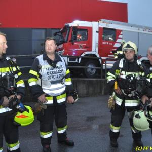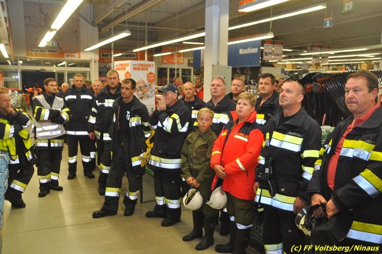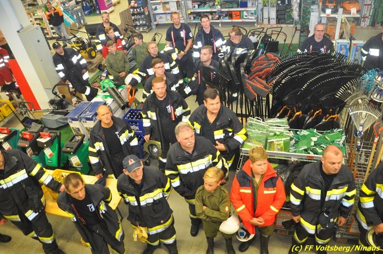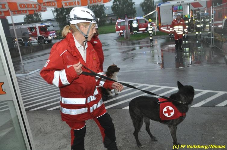 VOITSBERG, am 11.09.2017 „Brand“ in Fachmarkt mit 8 Vermissten Kürzlich fand beim OBI-Fachmarkt in Rosental eine Einsatzübung mit den Feuerwehren Rosental, Bärnbach und Voitsberg und der Suchhundestaffel des Roten Kreuzes statt. Übungsannahme war ein Brand, welcher in den Räumlichkeiten des Holzzuschnittes entstand. Die an die Landesleitzentrale Steiermark in Lebring angeschlossene Brandmeldeanlage löste den Alarm aus, worauf die Feuerwehren alarmiert wurden. Das anwesende Personal evakuierte anwesende Kunden aus dem Geschäft und begab sich sodann zum Sammelplatz. Zwei Arbeiter waren nach Erkundung der Einsatzleiter im Lager aufgrund der reichlichen Rauchgase vermisst. Atemschutztrupps konnten nach kurzer Zeit beide Arbeiter retten. Die Brandbekämpfung erfolgte mit Tanklöschfahrzeugen und nach Herstellung einer Löschleitung vom Gradnerbach mit einem C-Rohr. Verraucht waren auch Teile des Geschäftes, wobei 6 Kunden ebenfalls vermisst waren. Die mit alarmierte Suchhundestaffel des Roten Kreuzes konnte mit einigen Hunden die Suche aufnehmen und die Abgängigen lebend finden, erste Rettungsmaßnahmen einleiten und erfolgreich aus der Gefahrenzone bringen. Nach dem erfolgreichen Abschluss dieser Übung fand im Geschäft eine Nachbesprechung statt. Übungsleiter HBI Franz Sommer erläuterte die Vorgangsweise bei Eintreffen nach einer Alarmmeldung und machte auf einige Gefahrenpunkte aufmerksam. Die Einsatzleiter BI dF. Markus Birnstingl und HFM Daniel Eberhardt, bestens unterstützt von LM dF. Christian Buchegger mit dem Kommandofahrzeug der FF Voitsberg, konnten den Einsatz vorbildlich leiten. Der Geschäftsleiter des OBI – Baumarktes Rosental, Herr Markus Vötsch, bedankte sich abschließend für die Abhaltung dieser Übung, sprach den Mitgliedern der Feuerwehren allgemein seine Hochachtung für deren Einsatz aus und lud zu einer Jause und Getränken ein. Als Übungsbeobachter fanden sich ABI Alfred Jauk und EABI Josef Porta ein.