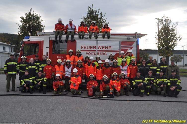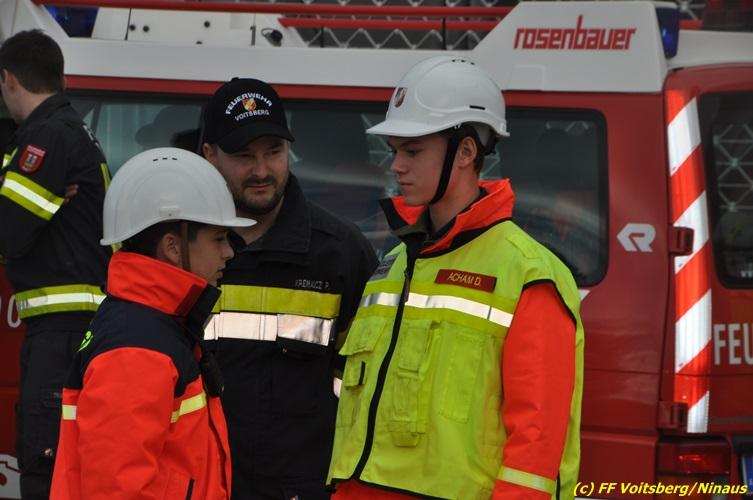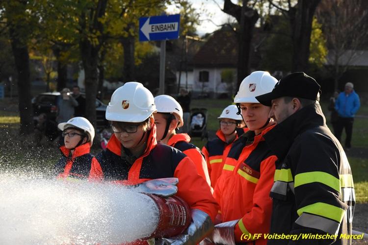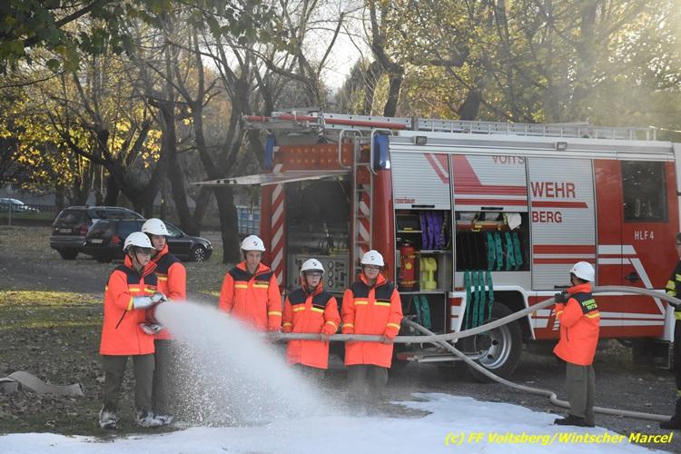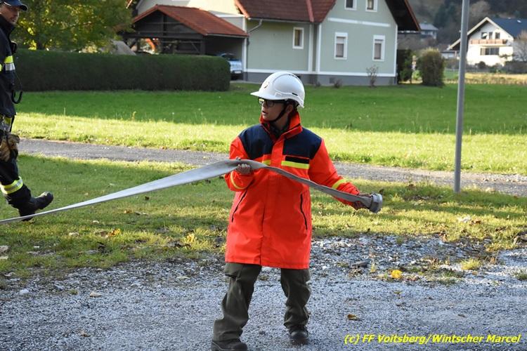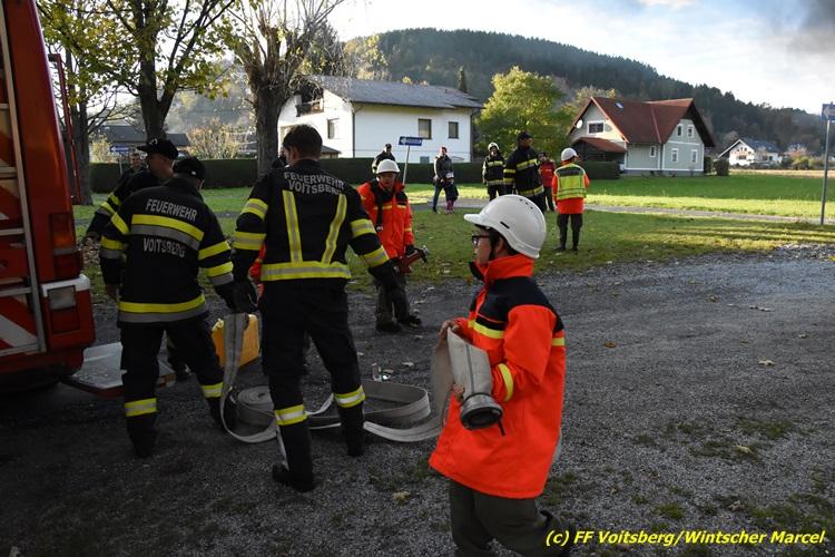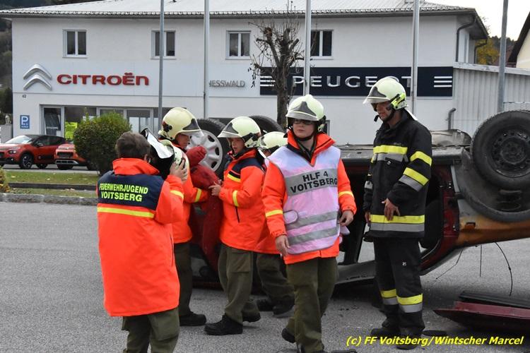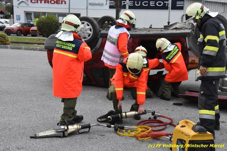 VOITSBERG, am 27.10.2017 Im Rahmen einer 24-Stunden-Übung der Feuerwehrjugend der Feuerwehren Afling, Bärnbach, Maria Lankowitz, Rosental und Voitsberg fand am 28. Oktober um 15 Uhr am Vorplatz des Rüsthauses Voitsberg eine technische Einsatzübung statt. Übungsannahme war nach einem Zusammenstoß zweier PKW die Rettung von zwei eingeklemmten Personen mit hydraulischer Schere und Spreizer, sowie die Absicherung der Unfallstelle und dem Herstellen eines Brandschutzes. Die 30 beteiligten Jugendlichen konnten die gestellten Aufgaben vor vielen anwesenden Verwandten und Feuerwehrfunktionären mit vollster Zufriedenheit der Ausbilder lösen. Weitere Übungsorte dieser 24-Stunden-Übung waren in Bärnbach, Afling und Rosental.