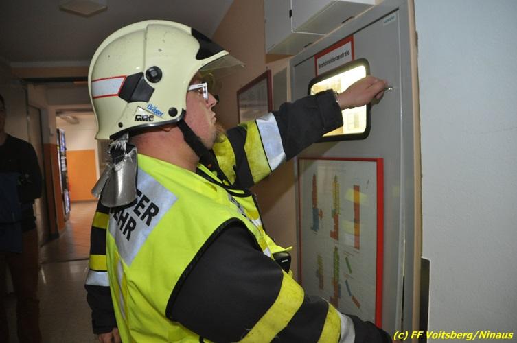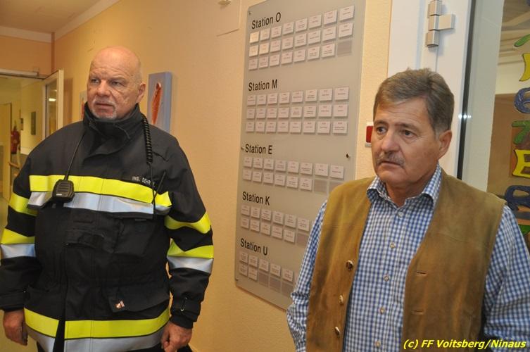 VOITSBERG, am 13.11.2017 Die Freiwillige Feuerwehr Voitsberg führte im Bezirkspflege- und Seniorenheim am Voitsberger Schlossberg eine Einsatzübung durch. Übungsannahme war ein Zimmerbrand mit zwei Vermissten. Unter schwerem Atemschutz wurden diese von einem Trupp gerettet. Des weiteren wurden die Funktionalität der Steigleitung als auch sämtliche Zugänge zum Objekt überprüft. Bei einer abschließenden Erläuterung des Einsatzes durch den Übungsleiter OBI Ing. Bernd Unger wurde dem Personal nochmals der Übungsablauf und das richtige Verhalten in einem Brandfalle erklärt. Betriebsdirektor Erich Corner bedankte sich bei der FF Voitsberg für die Durchführung der Übung und seinem Personal für das Interesse der Teilnahme und lud zu einem Abendessen, bei welchem noch die Eindrücke dieser Übung diskutiert wurden. Wehrkommandant ABI Ing. Klaus Gehr bedankte sich namens der KameradInnen für die Einladung.