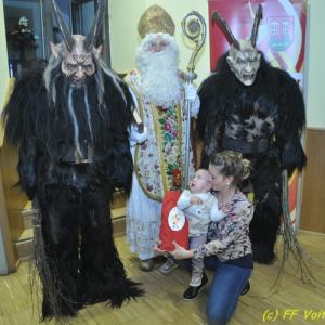 Aus Anlass des bevorstehenden Nikolaustages besuchte der Nikolaus mit zwei Krampussen die Kinder bzw. Enkelkinder der Feuerwehrmitglieder. Wehrkommandant-Stellvertreter OBI Ing. Bernd Unger begrüßte namens der Feuerwehr die Anwesenden, ehe es zum Höhepunkt des Nachmittages, dem Erscheinen der „Ehrengäste“ kam. Gespannt lauschten die Kinder das Eintreten und zeigten sich teilweise ängstlich den Krampussen gegenüber aber hocherfreut über den Nikolaus, welcher die Gaben den Kindern überreichte. Es wurden als Andenken an diesem Tag sehr viele Erinnerungsfotos gemacht. Bernd Unger erwähnte lobend die Organisatoren Karlheinz Buchegger und Waltraud Veigl für die Vorbereitung und die Durchführung. Abschließend bedankte sich der Beauftragte für die Kameradschaftspflege BI Karlheinz Buchegger für das Erscheinen und lud zu einem kleinen Imbiss ein.