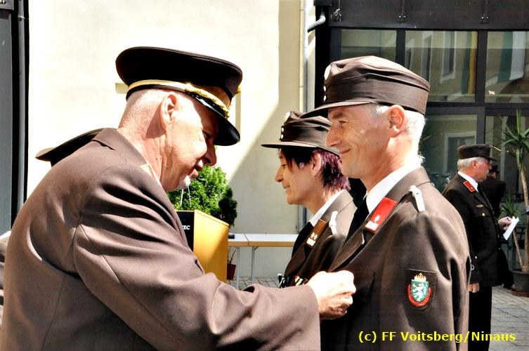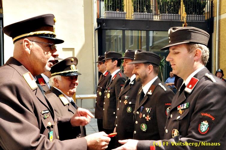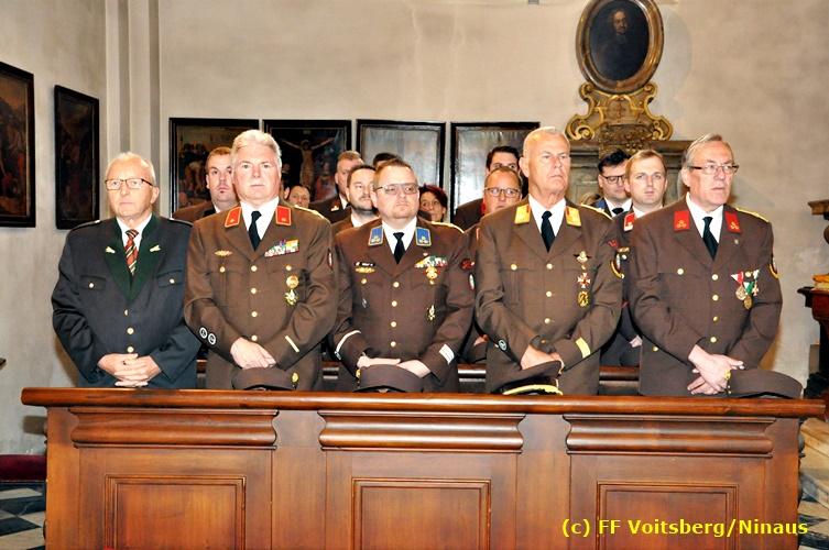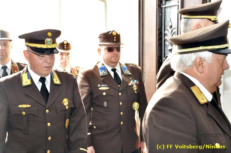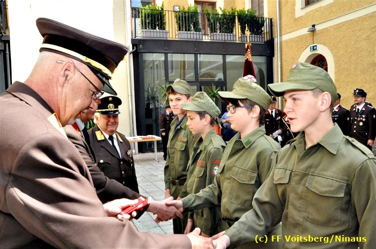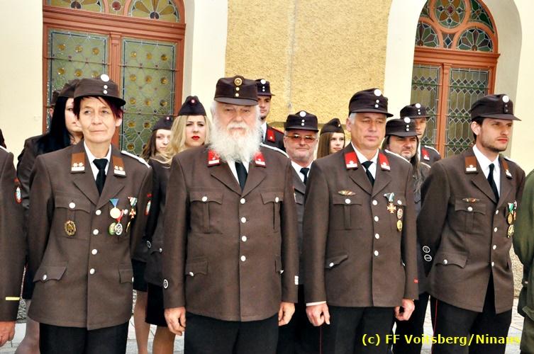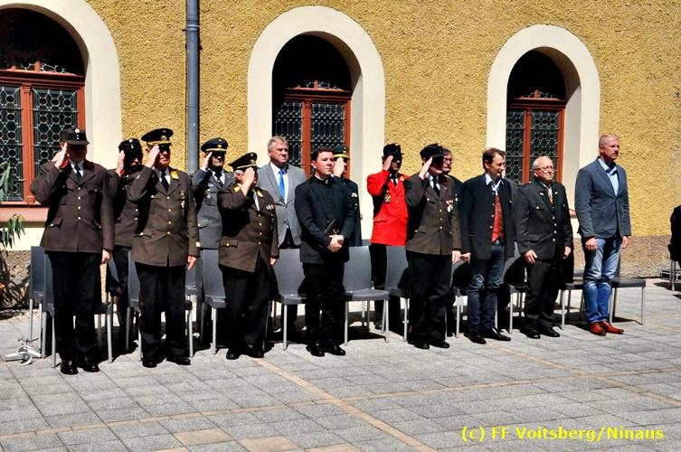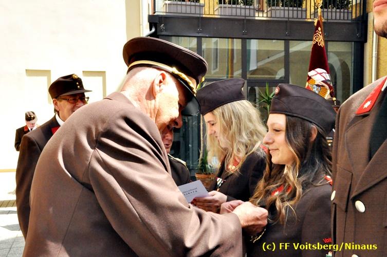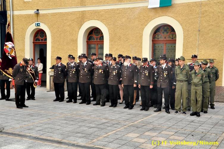 Der Festtag für die Feuerwehren, der Florianitag, wurde heuer am Sonntag, dem 6. Mai 2018 von der FF Voitsberg mit dem gewohnten Programm gefeiert. Die Florianimesse, nach dem Einmarsch der KameradInnen feierlich zelebriert von Kaplan Adrian Aileni und musikalisch umrahmt von einem Bläserensemble der Bergkapelle Hödlgrube-Zangtal war der erste Höhepunkt dieses Sonntages. Unser Mitglied und gleichzeitig Pastoralassistent der Pfarre Martin Rapp und Kaplan Adrian Aileni würdigten in berührenden Ansprachen die Leistungen der Feuerwehr, welche mit Applaus der Besucher des Gottesdienstes bedacht wurden. Im Anschluss fand im Klosterhof, dem Innenhof der Pfarre, der offizielle Teil des Florianitages statt. Wehrkommandant BR Ing. Klaus Gehr konnte eine Reihe von Ehrengästen begrüßen: Bürgermeister EHBI Ernst Meixner, Kaplan Adrian Aileni, die Vizebürgermeister Kurt Christof und Walter Gaich, Stadtrat Markus Leinfellner, Bezirksgeschäftsführer des Roten Kreuzes Direktor Aldo Striccher, Bezirksstellenleiter des Zivilschutzverbandes Anton Schober, Obmann des Kameradschaftsbundes Günter Salmutter, Landesleiter der Steirischen Wasserrettung Ing. Mag. DI (FH) Kurt Rath, Staffelführer der ÖRHB Hermann Truschnig, Franz Patz von den Amateurfunkern, Abschnittsfeuerwehrkommandant ABI Alfred Jauk und im speziellen unsere Ehrendienstgrade EABI Rudolf Gargitter und ELM Richard Waidacher. Nach Dankesworten durch den Wehrkommandanten an die Mannschaft und an die Stadtgemeinde für die Unterstützung wurde unser Mitglied Michael Kaschel angelobt. Ein weiterer erfreulicher Programmpunkt waren nachstehende Beförderungen und Auszeichnungen: Befördert wurden die Jungfeuerwehrmänner Kilian Kranabether, Jonathan Rapp, Marvin Wintscher, Philip Schmelzer und Diemo Acham. Zum Feuerwehrmann: PFM Michael Kaschel Zum Oberfeuerwehrmann: FM Markus Roßmann Zum Löschmeister: HFM Markus Donnelly Zum Oberlöschmeister der Sanität: LMdS Christoph Amberger Zum Oberlöschmeister des Fachdienstes: LMdF Peter Kremaucz Zum Oberlöschmeister: LM Christian Buchegger Ausgezeichnet wurden: Verdienstmedaille FF Voitsberg für 10jährige Mitgliedschaft: BIdF Harald Kremaucz Verdienstkreuz in Bronze des BFV Voitsberg: LMdF Daniel Traußnigg, OFM Victoria Fink und OFM Daniela Reisinger Verdienstkreuz in Silber des BFV Voitsberg: BM Rene Sorger und LM Christian Buchegger Verdienstzeichen 3. Stufe in Bronze des LFV Steiermark: OLMdF Waltraud Veigl Ehrenzeichen des Landes Steiermark für 25jährighe Tätigkeit: LM Martin Rapp Diese Ehrungen wurden von BR Klaus Gehr, EHBI Bgm. Ernst Meixner und ABI Alfred Jauk überreicht. Bürgermeister Ernst Meixner bedankte sich in seiner Festansprache namens der Stadtgemeinde Voitsberg für die erbrachten Leistungen und sagte auch in Zukunft vollste Unterstützung zu. Moderiert in bewährter und gekonnter Weise wurde diese Veranstaltung von BI Karlheinz Buchegger. Mit dem Abspielen der Landeshymne durch eine Abordnung der Bergkapelle Hödlgrube-Zangtal wurde dieser würdevolle Florianitag im Klosterhof abgeschlossen. Ein Gruppenfoto mit allen Teilnehmern im wundervollen Ambiente des Klosterhofes wurde zum Schluss von Foto Koren angefertigt. Ein gemeinsames Mittagessen in den Voitsberger Stadtsälen rundete diesen für die Feuerwehren stolzen Feiertag ab. Fotos und Text: Walter Ninaus/FF Voitsberg