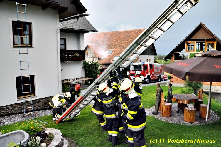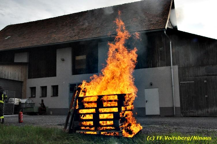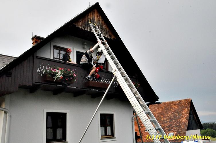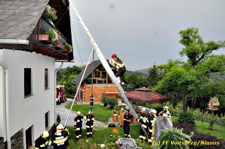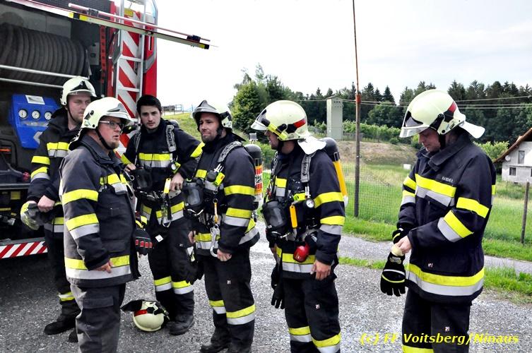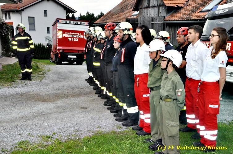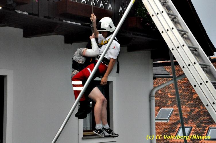 VOITSBERG, am 04.06.2018 Die FF Voitsberg führte am Montag, dem 4. Juni 2018 eine Einsatzübung beim Anwesen Schlosser vulgo Weingartbauer am Riemerweg in Voitsberg durch. Die erste Gruppe hatte mit dem B-Rohr einen Holzstapelbrand und anschließend einen Brand mit Menschenrettung unter schwerem Atemschutz im Wirtschaftsgebäude zu bekämpfen. Gruppe zwei hatte die Aufgabe, eine auf einem Balkon verletzte Person durch Abseilen zu retten, wobei für die Erstversorgung eine zum Haus gehörende Strickleiter in Verwendung genommen werden konnte. Eine ausgebildete MRAS-Helferin und ein ausgebildeter Sanitäter des Roten Kreuzes führten in Zusammenarbeit mit dem Bodenpersonal die erfolgreiche Rettung durch und konnten den Verletzten dem Roten Kreuz übergeben. Bei der Schlussbesprechung dankte BR Klaus Gehr für die gezeigte Einsatzbereitschaft und bedankte sich beim Roten Kreuz für die Teilnahme. Einen besonderen Dank sprach der Wehrkommandant für die Bereitstellung des Übungsgeländes der Familie Schlosser aus und überreichte Frau Schlosser einen Blumenstrauß. Herr Willibald Schlosser zollte für die gezeigte Leistung Respekt und lud abschließend zu Speis`und Trank, wofür sich die KameradInnen bedanken möchten. Fotos und Text: Walter Ninaus/FF Voitsberg