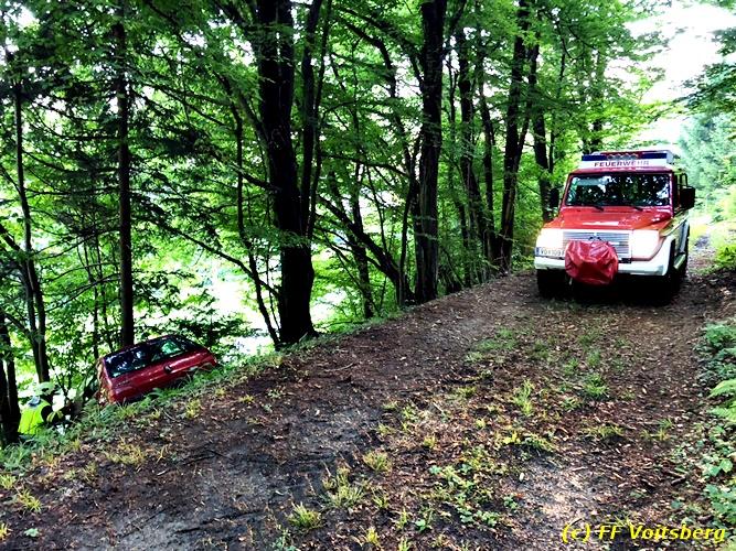 VOITSBERG, am 23.07.2018 Im Rahmen der Ausbildung fand am Montag, dem 23. Juli 2018 eine technische Einsatzübung bei der Familie Christof in der Gößnitzstrasse in Voitsberg statt. Übungsannahme war die Rettung von zwei Personen aus einem PKW, welcher in einem Wald abgestürzt war. Mit diversen Hilfsmitteln wurden die Personen gerettet und das verunfallte Fahrzeug geborgen.