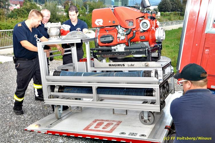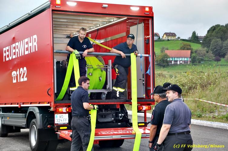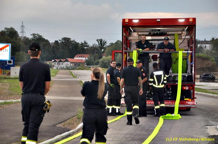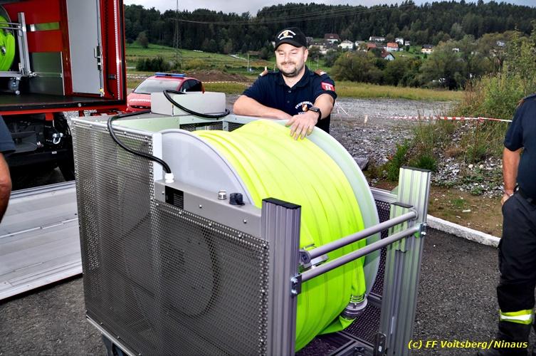 VOITSBERG, am 03.09.2018 Im Rahmen der regelmäßigen Übungen und Schulungen fand am Montag, 3. September 2018 im sogenannten ÖDK-Gelände eine erste Übung mit dem neuen Schlauchfahrzeug statt. Binnen kurzer Zeit wurden damit 200 m B-Druckschläuche zur Erprobung des Systems ausgelegt. Gleichzeitig wurde mit einer Tragkraftspritze Wasser aus der Kainach von den vorgesehenen Pumpstellen in das nach Forderung der Feuerwehr installierte Rohrsystem, welches unterirdisch in das ÖDK-Gelände führt, gepumpt. Aus Hydranten wurde sodann die verlegte Löschleitung mit Wasser versorgt und zu den Tanklöschfahrzeugen transportiert, sodass mit zwei Wasserwerfern in Tätigkeit getreten werden konnte. Nach ersten Erkenntnissen kann man berichten, dass dieser seitens der Stadtgemeinde Voitsberg erfolgte Ankauf dieses Fahrzeuges, welches in dieser Form steiermarkweit als Prototyp bezeichnet werden kann, als zukunftsweisend bezeichnet werden kann. Text und Fotos: Walter Ninaus, FF Voitsberg