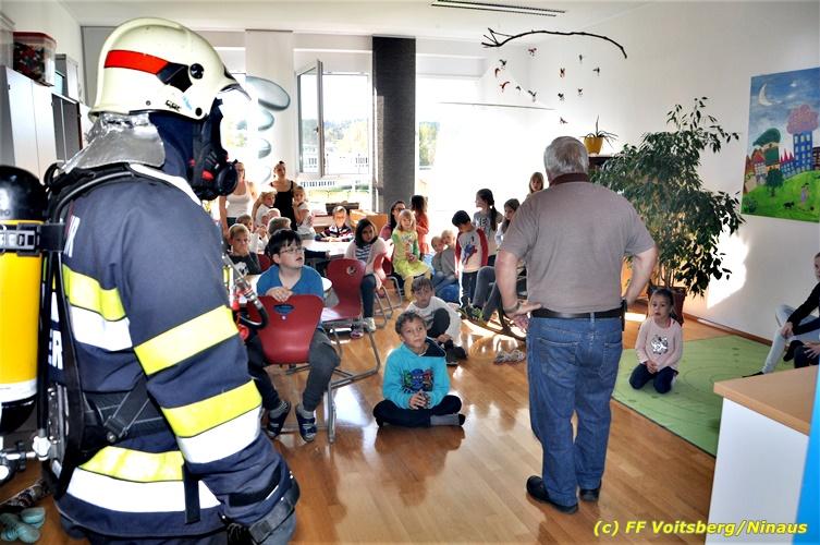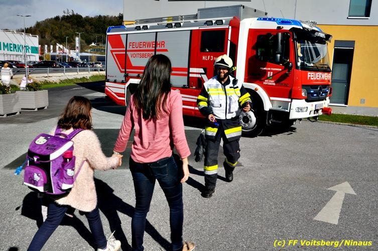 VOITSBERG, am 24.10.2018 Im Kinderhort Voitsberg in der Helmut-Glaser-Strasse fand am Mittwoch, 24. Oktober 2018 eine Räumungsübung statt. Übungsannahme war ein Brand in der Küche im ersten Stock. Nach dem internen Alarm begaben sich die Schüler und die Aufsichtspersonen auf einen im Alarmfall vorgesehenen Sammelplatz. Die verständigte FF Voitsberg führte nach der Erkundung einen Innenangriff unter schwerem Atemschutz mit einem Trupp durch und löschte das Feuer. Der vorhandene Rauchabzug im gesamten Objekt konnte sodann mit Unterstützung eines Drucklüfters die Räumlichkeiten rauchfrei machen, sodass die Schüler ihre Klassenzimmer wieder beziehen konnten. Davor wurde den Kindern von ABI Jauk das richtige Verhalten bei einem Brandereignis gezeigt, wobei die Jugendlichen aktiv mitarbeiten konnten. Bei einer abschließenden Nachbetrachtung der Übung mit BR Ing. Klaus Gehr, ABI Alfred Jauk, Einsatzleiter Harald Kremaucz und Verantwortlichen des Horts wurden der Ablauf als auch Verbesserungen erläutert. Text und Fotos: Walter Ninaus, FF Voitsberg