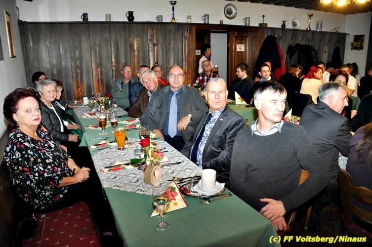 VOITSBERG, am 15.12.2018 Die Freiwillige Feuerwehr der Stadt Voitsberg veranstaltete am Samstag, 15. Dezember 2018 ihre traditionelle Weihnachtsfeier. BR Ing. Klaus Gehr konnte beim Schneiderwirt am Lobmingberg in Voitsberg neben den erschienenen Wehrmitgliedern und deren Partnerinnen einige Ehrengäste begrüßen: Stadtpfarrer Mag. Gerald Krempl, Bürgermeister Ernst Meixner, die Vizebürgermeister Kurt Christof und Walter Gaich, Stadtrat Markus Leinfellner und Franz Patz von den Amateurfunkern. Nach Worten des Dankes für die geleisteten Tätigkeiten seitens des Wehrkommandanten und des Bürgermeisters folgten besinnliche Worte zur Adventszeit vom Pfarrer. Musik zur Jahreszeit passend kam von einem Bläserensemble der Bergkapelle Hödlgrube-Zangtal. Ein gemeinsames Abendessen mit einem Tortenbuffet und einige gemütliche Stunden rundeten diese Weihnachtsfeier ab. Text: Walter Ninaus Fotos: Gehr und Ninaus