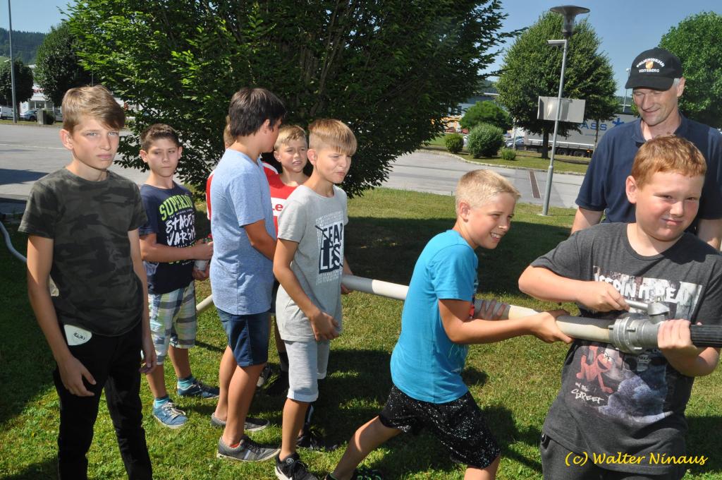 VOITSBERG, am 01.07.2019 Neue Mittelschule Voitsberg besuchte die Feuerwehr Voitsberg Zwei Klassen der NMS Voitsberg besuchten am 1. Juli 2019 die Feuerwehr Voitsberg. Begrüßt wurden die SchülerInnen mit ihrer Lehrerin/Lehrer vom Jugendbeauftragten Daniel Traußnigg. Die Jugendlichen folgten mit großem Interesse den Vorträgen und Aktionen der Wehrmitglieder. Ob beim Rundgang durch das Rüsthaus, den richtigen Handhabungen mit Feuerlöschern, den praktischen Übungen mit Schere und Spreizer, dem Anlegen eines Atemschutzgerätes, die SchülerInnen stellten an die KameradInnen Fragen und erhielten die Antworten. Besonders gut angekommen bei diesen schweißtreibenden Temperaturen wurde die kalte Dusche mit einem Strahlrohr bei Sprühstrahl. Nach Ende der Vorführungen wurden alle auf ein kühles Getränk und Obst eingeladen. Sollten Jugendliche, aber auch Erwachsene beiden Geschlechtes Interesse haben, der Feuerwehr beizutreten, so sind diese innerhalb der Feuerwehr gerne gesehen.